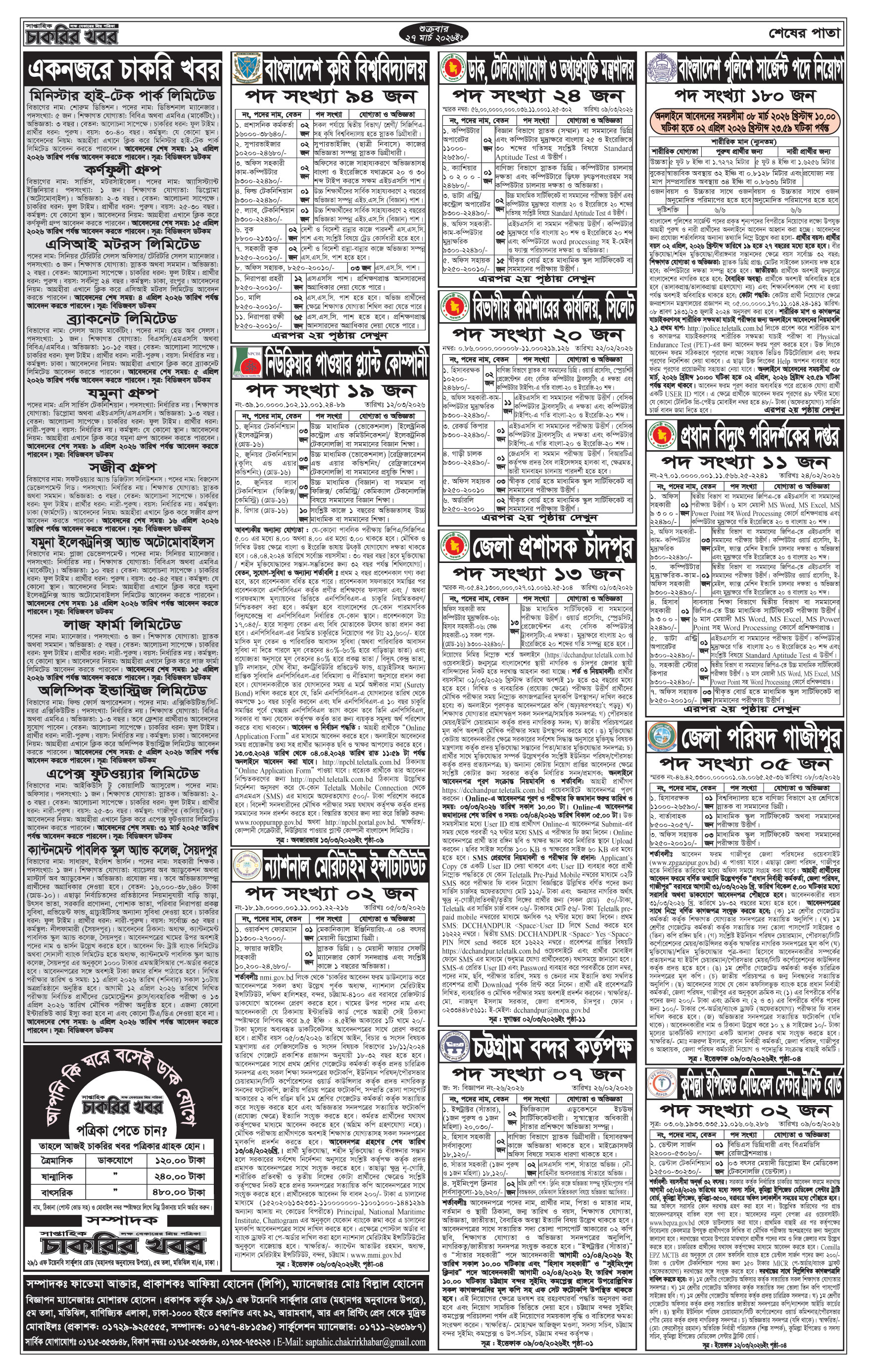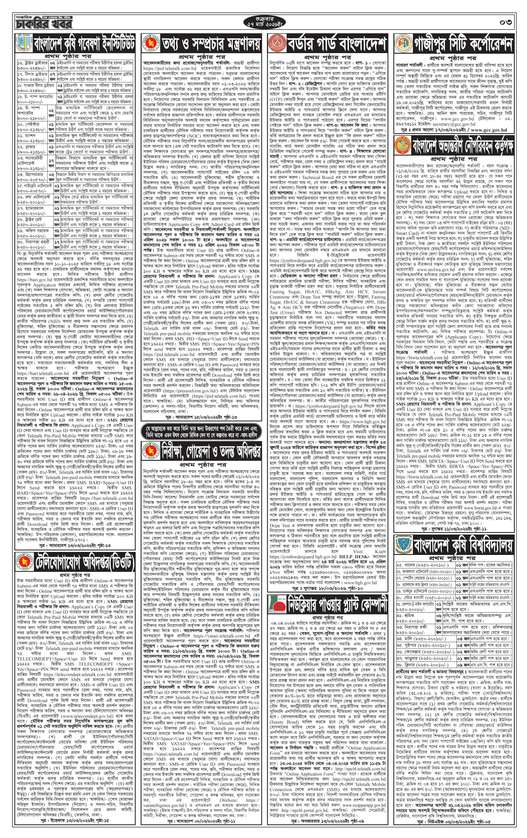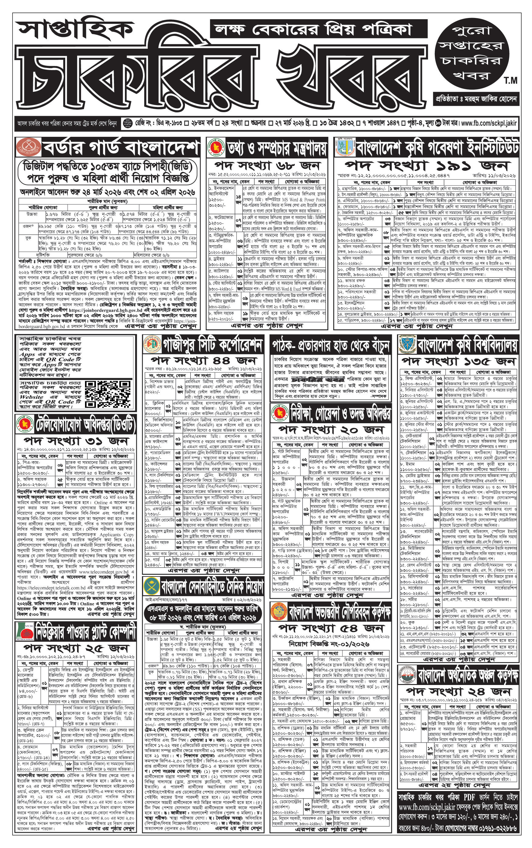সাপ্তাহিক চাকরির খবর পত্রিকা 3rd April 2026